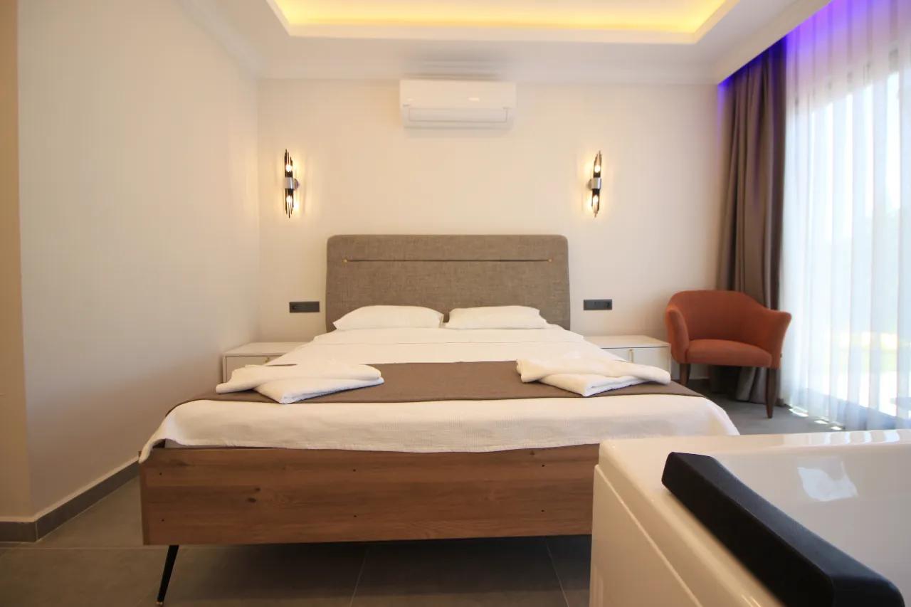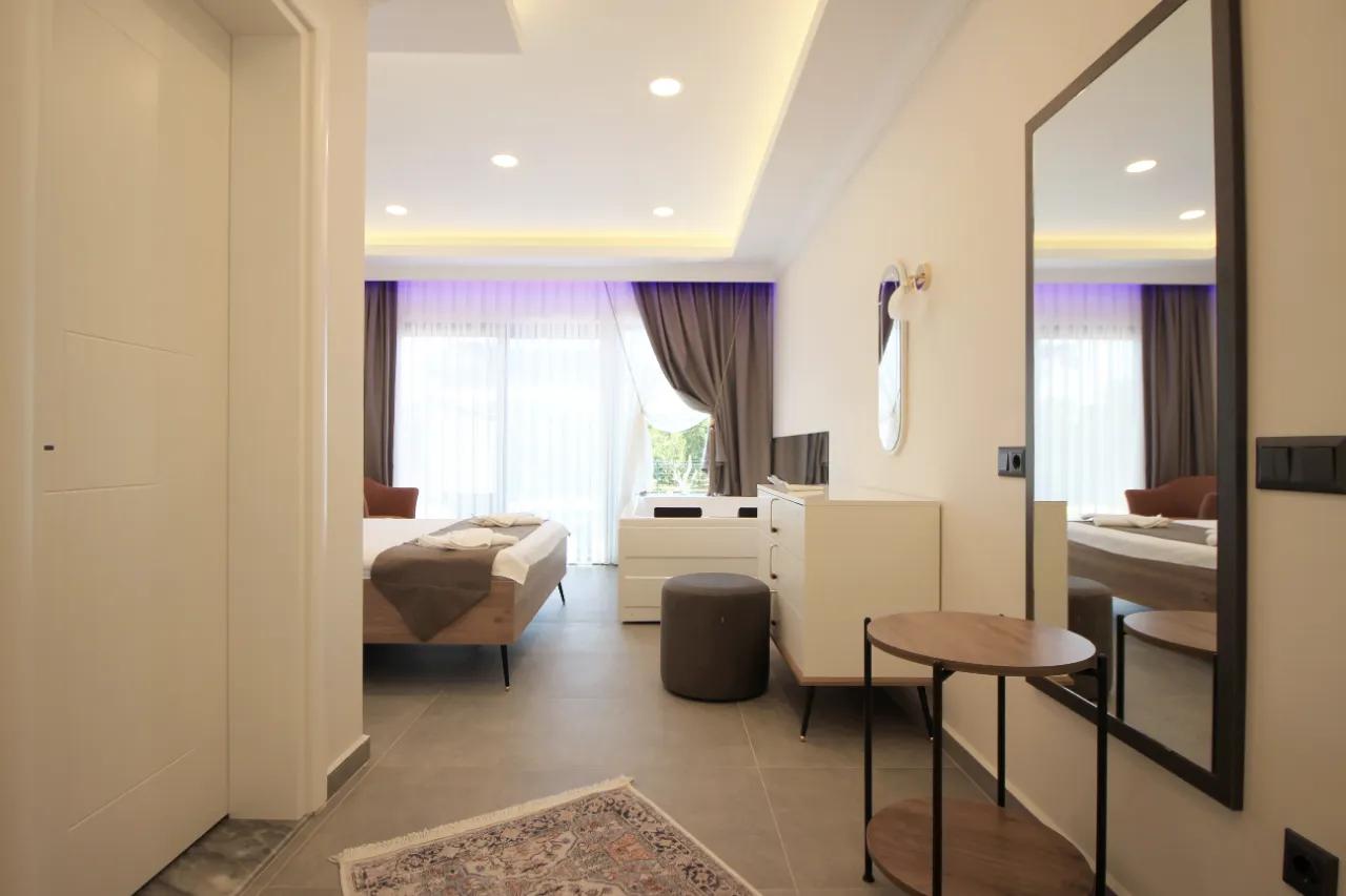 Nur 8 km von den goldenen Sandstränden, den Caretta-Caretta-Schildkröten und dem kristallklaren Meer von Sarıgerme entfernt, liegt die Villa Rio im Viertel Güzelyurt. Sie wurde sorgfältig für Gäste entworfen, die einen friedlichen und komfortablen Urlaub inmitten der Natur suchen. Im Herzen endloser Zitrushaine gelegen, bietet diese besondere Villa die Möglichkeit, die einzigartige Atmosphäre der Ägäis und des Mittelmeers in Ihrem eigenen privaten Raum zu erleben.