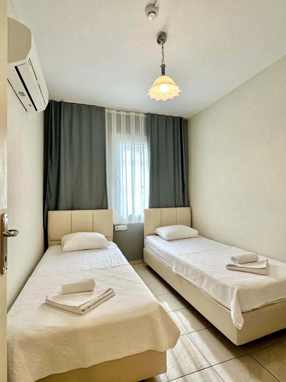 Our rooms, which can comfortably accommodate up to 6 people, come standard with an air conditioning system that provides a cool and fresh environment, a modern bathroom, a hairdryer, and free Wi-Fi connection. We look forward to hosting you and your loved ones in our 2-Bedroom Suites for a long and comfortable holiday in the unique nature of Dalyan.