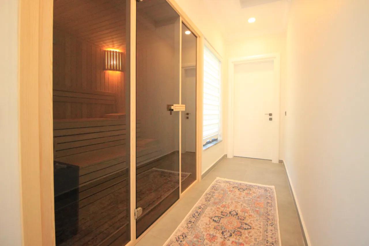 - Ekstra Yaşam Alanları: Koridorda yer alan çamaşır makinesi, mis kokulu narenciye bahçesi manzaralı huzurlu kitap okuma köşesi ve günün yorgunluğunu atabileceğiniz sauna, tatilinize değer katan ince detaylardır.