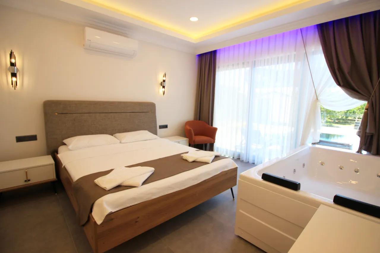 - Premium detaylar: Odada jakuzi, özel sauna ve şömine