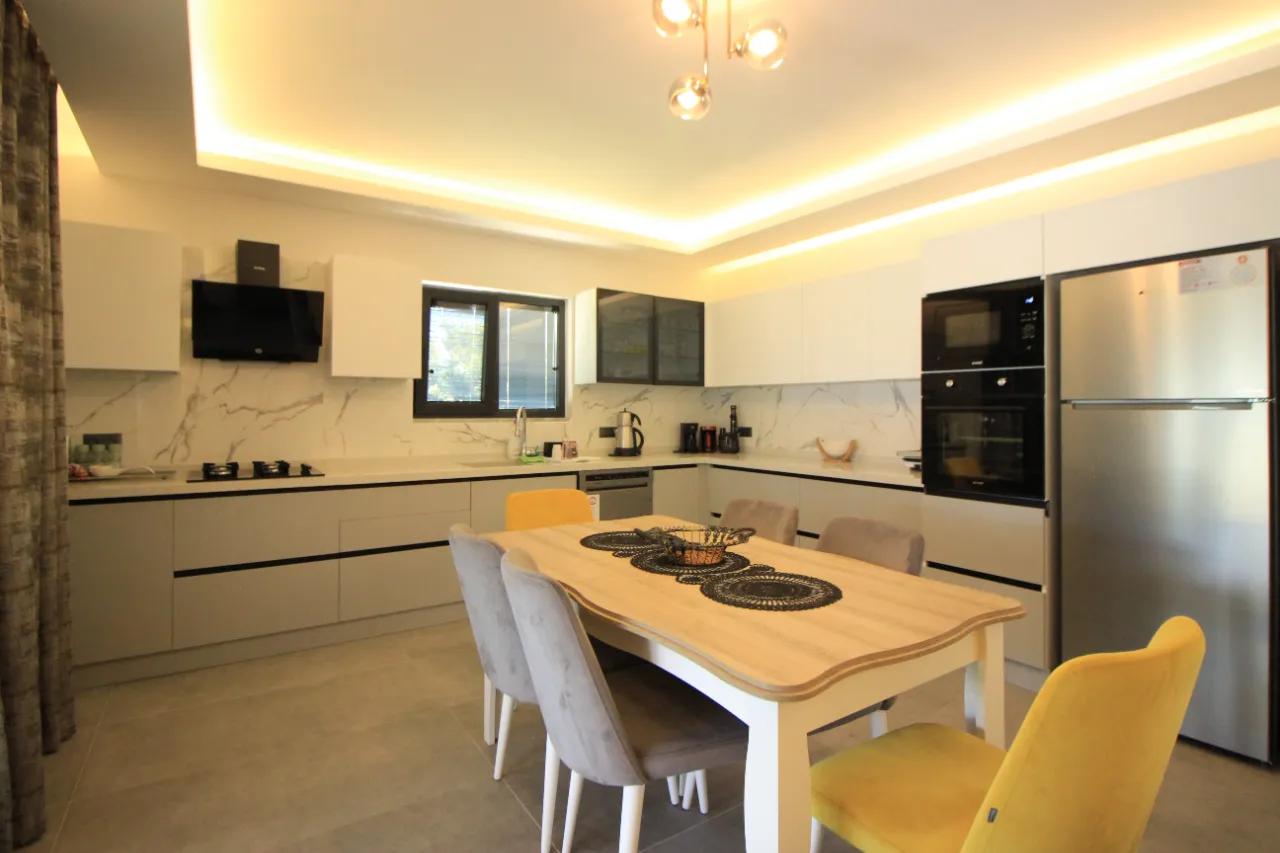 - Mutfak: Açık plan modern mutfakta; ankastre fırın, mikrodalga fırın, set üstü ocak, bulaşık makinesi, tost makinesi, 8 kişilik şık yemek takımı, mama sandalyesi ve tatiliniz boyunca ihtiyaç duyabileceğiniz tüm mutfak ekipmanları eksiksiz olarak yer almaktadır.